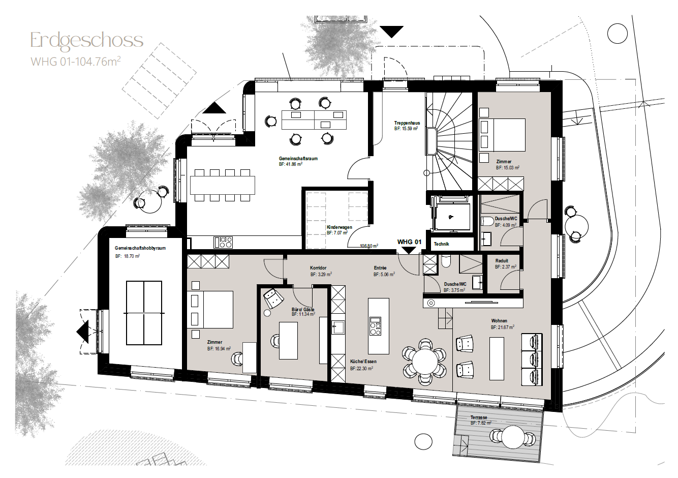 WHG Nr. Etage Anzahl Zimmer NGF BFG Terrase/Loggia